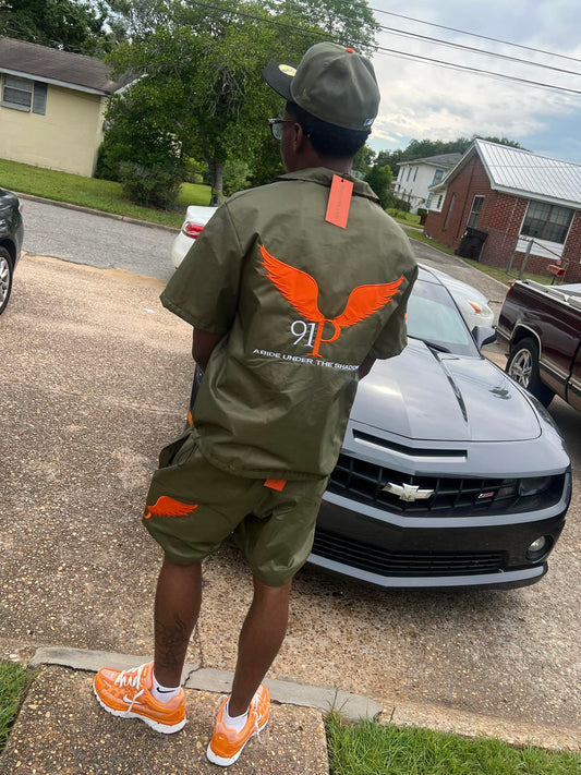 ORANGE X OLIVE GREEN WINDREAKER BIG LOGO SET